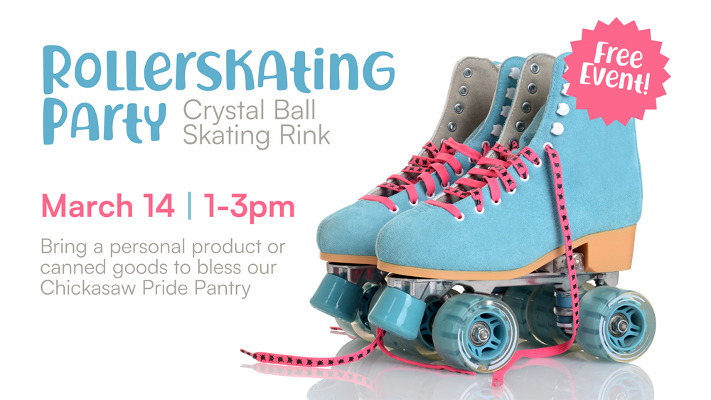 Everyone is invited to join us for a free skate @ Crystal Ball Skating Rink! We're also collecting canned food for our local partner, the Chickasaw Pride Pantry, so bring a donation and place in our decorated box.
